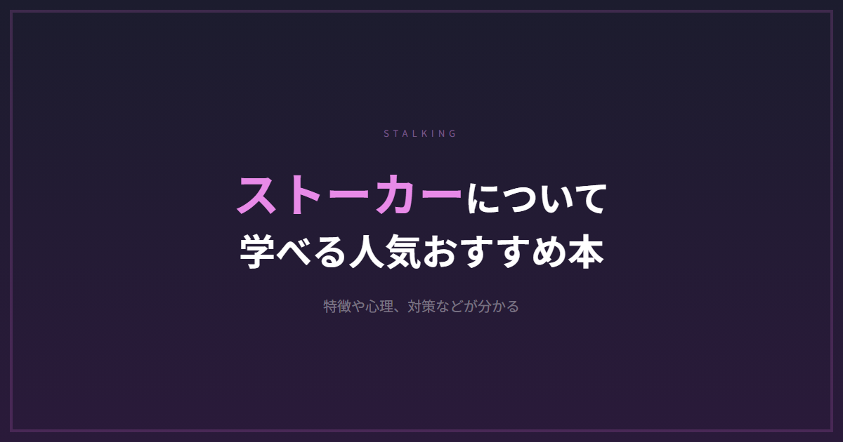 本記事で紹介した本を読むとストーカー加害者の心理や行動パターンに加え、実際に起きた嫌がらせ(ストーキング)行為なども分かります。